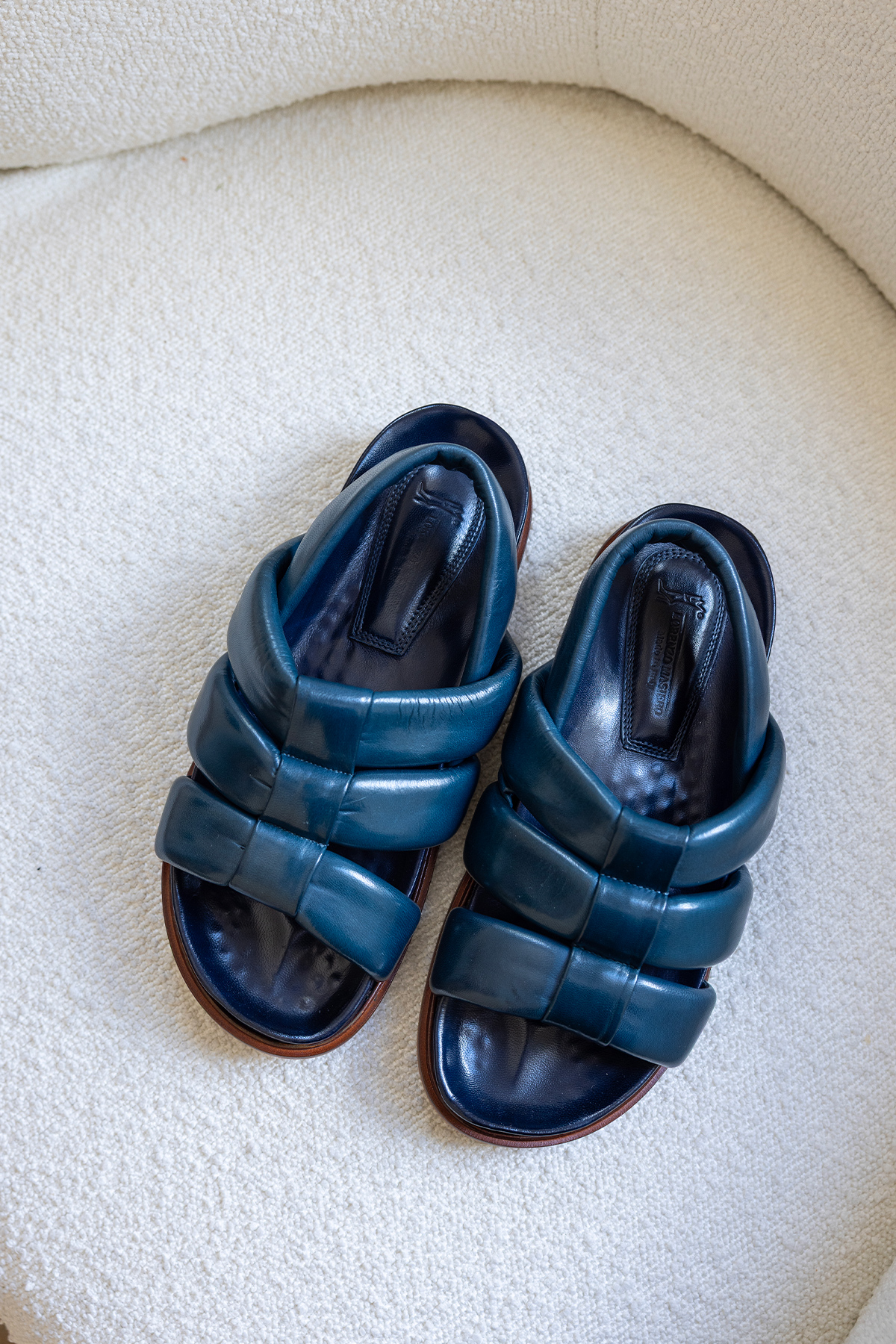 Lorenzo Masiero – Sandales S208, sandales bleu marine en cuir, semelle à mémoire de forme.